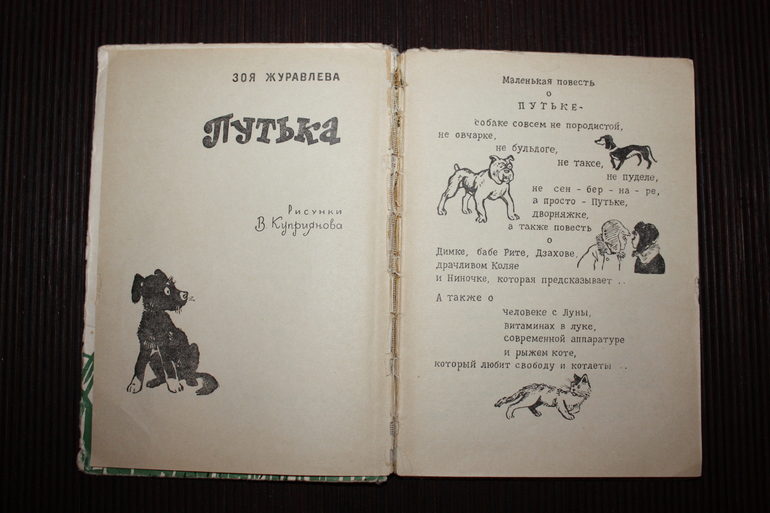 А главное отличие - сам Путька. В старом издании он практически не рос. С первых до последних страниц это жизнерадостный чёрный щеночек с белыми пятнышками. А в новом по мере повествования Путька из крошечного щенка превращается во вполне взрослую небольшую коротконогую дворняжку, с острой мордочкой и хвостом-баранкой.