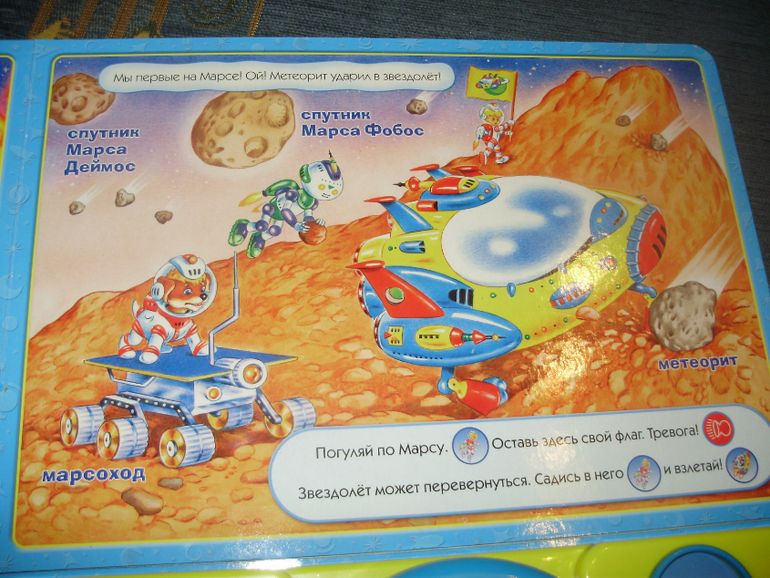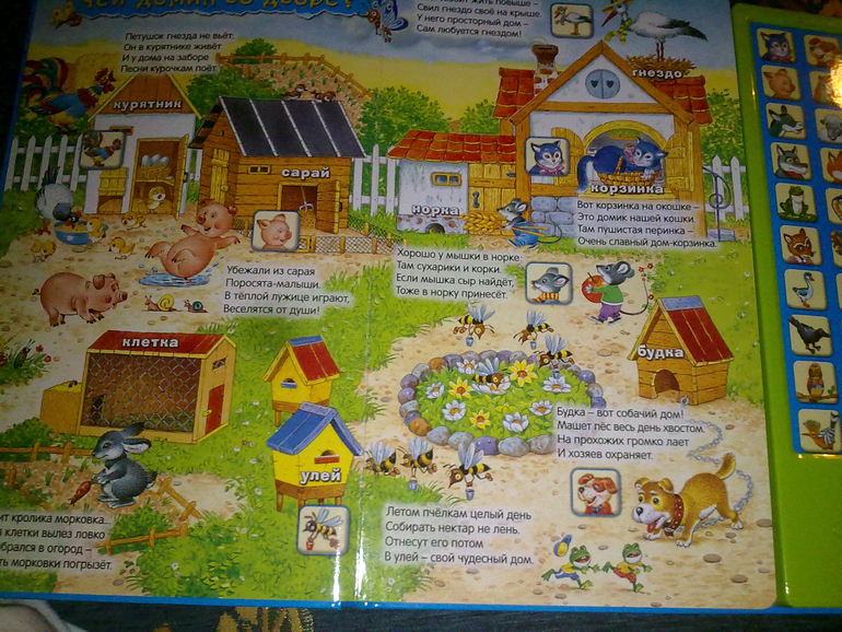 Ну что сказать... Компьютерные рисунки (не самые страшные). Звук хороший. Будет интересна ребенку в 0,8-1,3 г.. Мы в свои 1,11 явно пролетели. Хотя периодически (очень редко) сын книгу находит и сорок секунд листает. Не та аудитория.