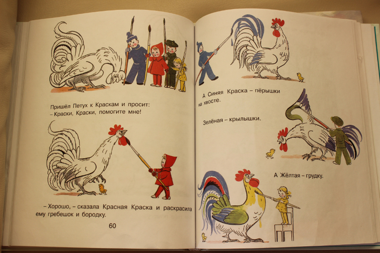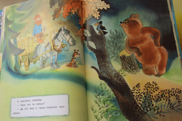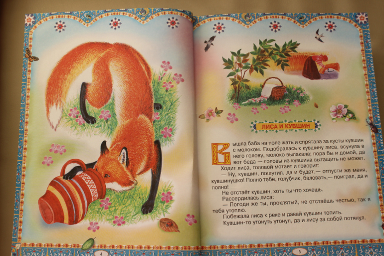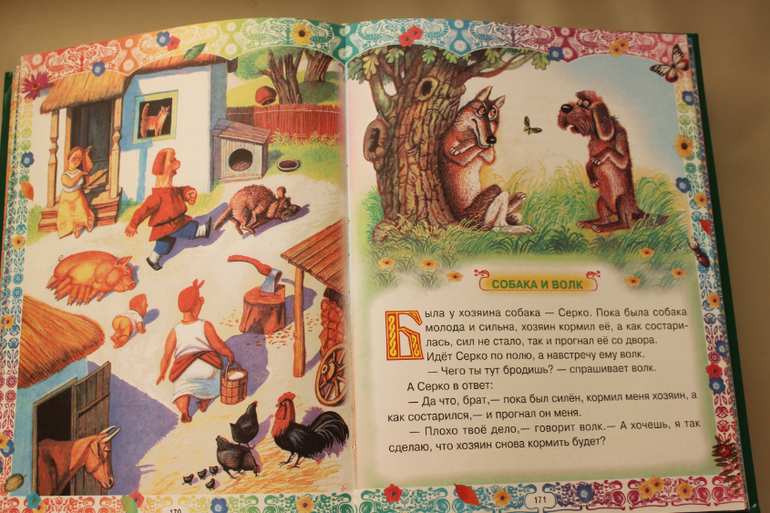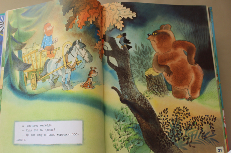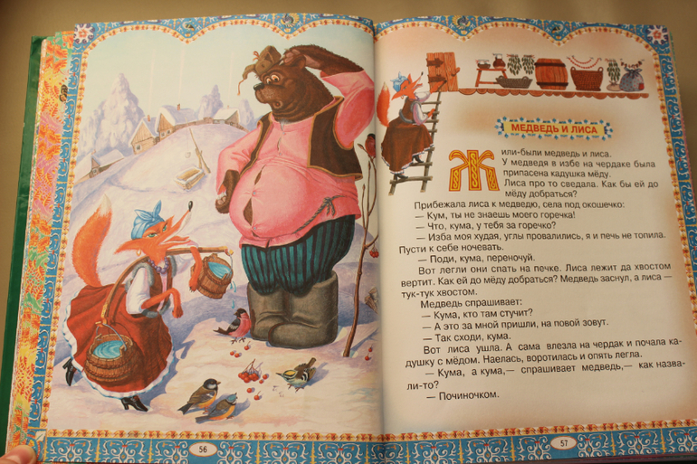 В моей книге вроде бы вообще нет разворотов без рисунков. Но они ооочень разные: от классических и довольно академичных до каких-то полукарикатурных, которые лично я в применении к фольклору не очень воспринимаю. Посмотрела содержание той, на которую вы поглядываете — очень хорошее, я считаю, много сказок в обработке Толстого, Ушинского. Иллюстрации тоже разные, как и в моей:) В общем и там и там есть достоинства и есть недостатки:) Но у той, на которую вы мне ссылку дали, меня бы отпугнула обложка — не люблю я такие)