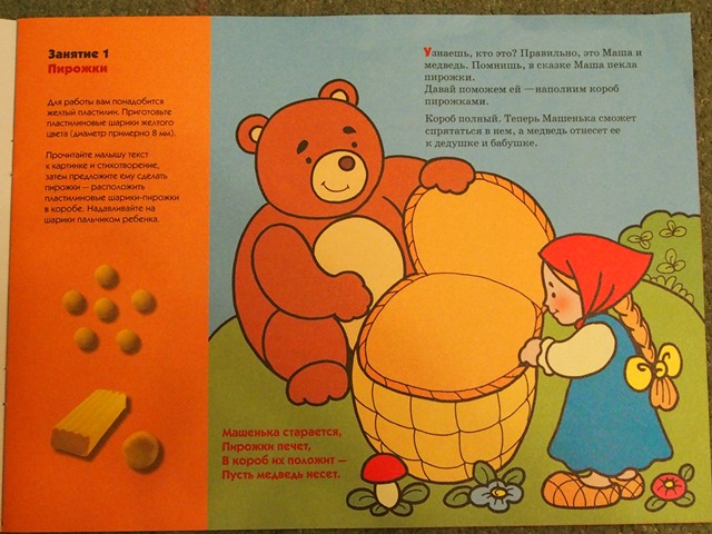 Сами книги интересные, много заданий, не надо ничего придумывать самому :) Простые рисунки.К каждому рисунку история-рассказ и стихотворение. И родителям хорошо, и детям интересно. Увлекает ребенка надолго. Работа с пластилином поначалу заканчивалась у нас тем, что его надо обязательно попробовать на вкус. Эта книжка помогла использовать его по назначению, про еду с ней забыли :))