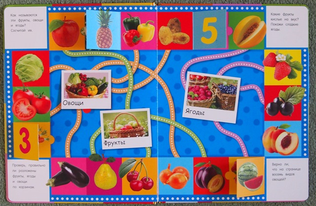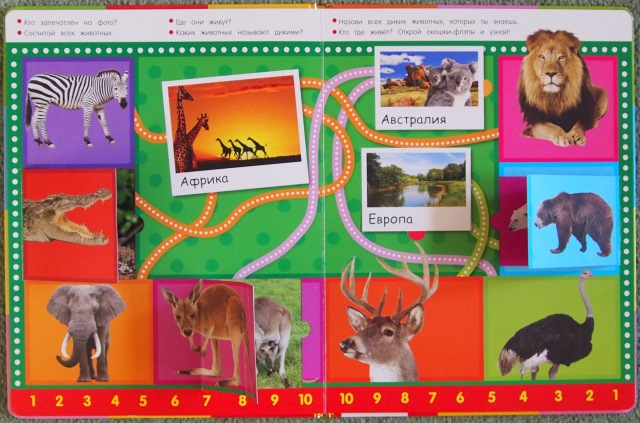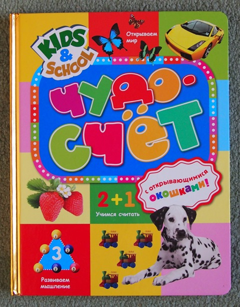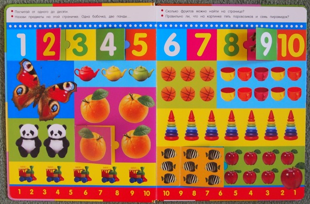 Очень яркая, красочная книга с открывающимися окошками - Чудо-счет. Сначала сомневалась, брать или нет. Показалось все очень пестро и много, что будет отвлекать внимание ребенка. Но невысокая цена сделала свое дело :). Книгой довольна. Плотные картонные страницы, много информации - тут и цифры, и животные, и овощи-фрукты, и одежда, и даже интересные факты. Много заданий. Так же есть пальчиковые ходилки, когда можно пальчиком проводить замысловатые линии от одного предмета к другому (что к чему относится). Ну а окошки в книжках открывать нравится почти всем детям :)