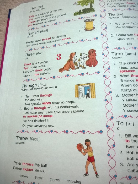 - изучаемые слова сразу же используется в одном или нескольких предложениях, это очень удобно и способствует лучшему усвоению. Для начальной стадии обучения может они и лишние, но в будущем обязательно пригодятся. Для старта думаю более удобны карточки с отдельными словами. Для детей - которые изучают язык уже осознанно на уровне предложений - словарь очень полезен.