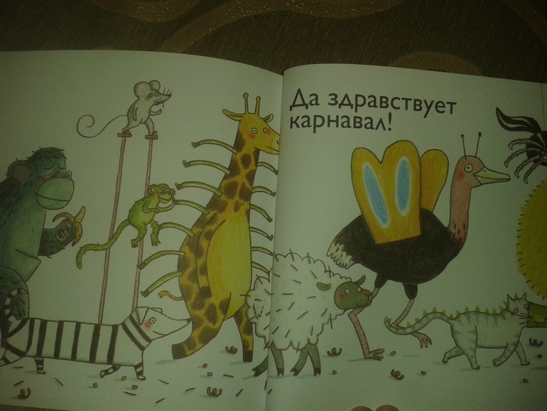 Мой совсем юный читатель пока в руках эту книгу не держал. Поэтому про детские впечатления поведать не могу. А вот другие мамы говорят, что благодаря ей детки например развивают внимательность (находят отличительные черты каждого животного) или память (перечисляя кто в кого переоделся).