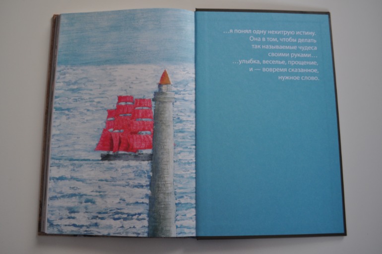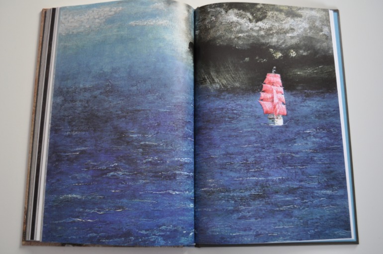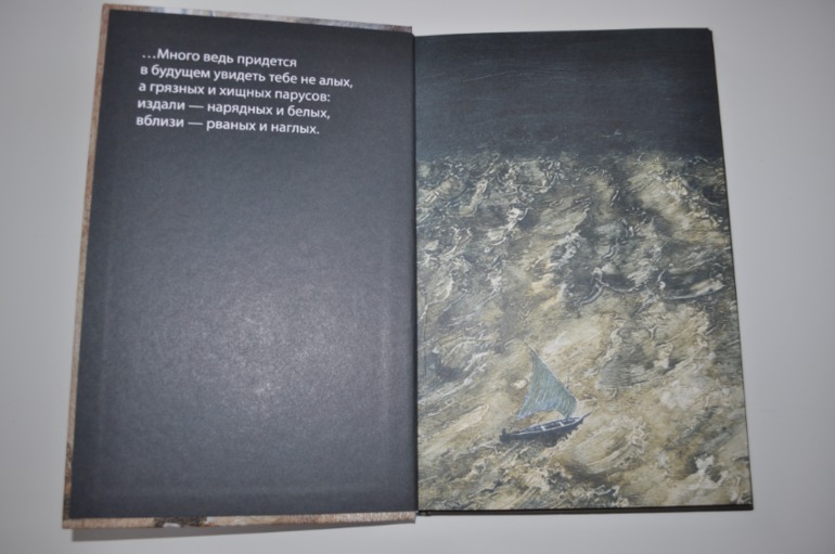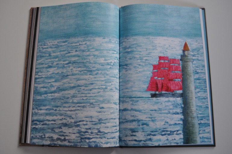 Это третьи Алые паруса в нашей библиотеке. Самые любимые. Самые реальные. "Грубая реальность", да. Серость, пересуды, одиночество. И среди этого вдруг алые паруса - "луч света в темном царстве". Тучи ушли, небо просветлело. Точное попадание художника в настроение этой романтической истории. Самые алые паруса из всех.