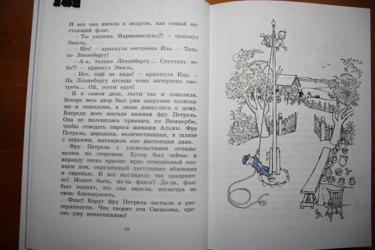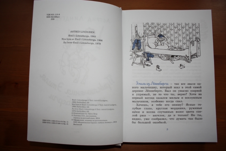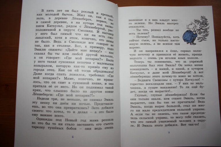 Что касается самой повести, то в детстве книгу "Приключения Эмиля из Лённеберги" я не читала, хотя по многу раз перечитывала другие произведения Астрид Линдгрен. Поэтому эту книгу мы впервые читали вместе с сыном. В восторге оба! Вообще, когда Эмиль только приехал к нам в очередном заказе из рида, ребёнок тут же отложил все другие книги "на потом", хотя у нас их целая полка, нечитанных-то... Так его привлекал озорной мальчик, умеющий стоять на руках. И мы на 5 дней погрузились в повестование о проделках Эмиля. Это были чудесные 5 дней!