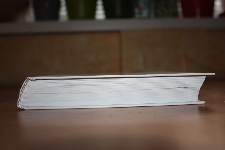 Единственное, что чуточку портит малину - это то, что случилось с нашим прекрасным белоснежным томиком после первого прочтения. Если в первый день книга радовала нас своей ровненькой прямоугольной формой со всех сторон, то теперь переплёт слово съехал в сторону((( Вживую это выглядит гораздо хуже, чем на фото. Может у кого-то такое уже было с книгами? В чём причина? Можно ли это как-то поправить? Есть ли опасность, что книжка совсем разъедется и развалится? И на всякий случай: крепче ли в данном случае тканевый переплёт держит книгу?