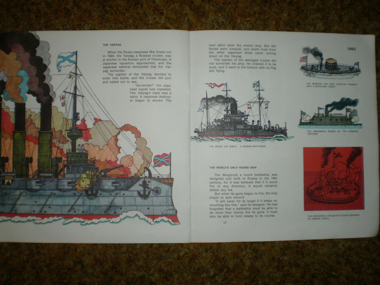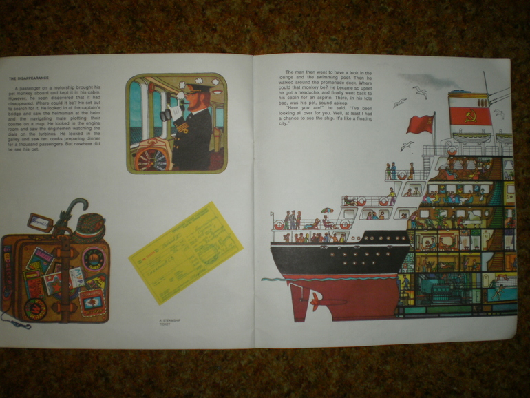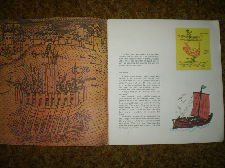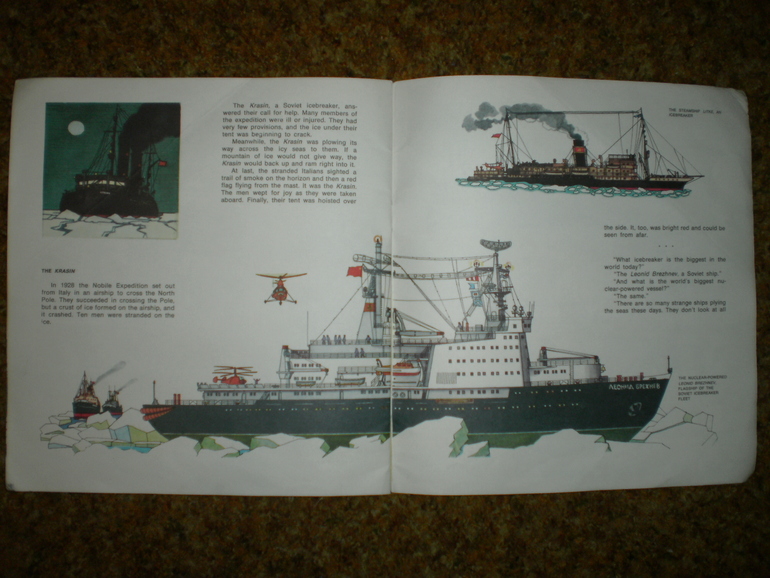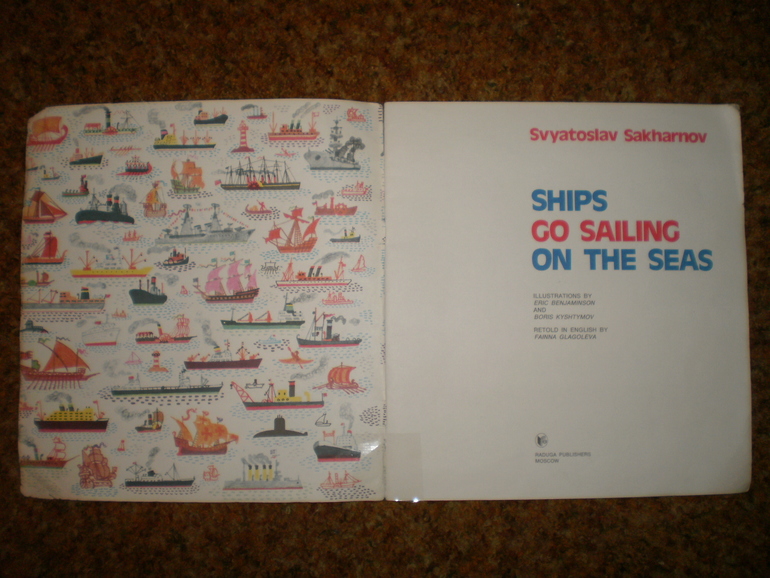 Иллюстраторы (красивые иллюстрации)И еще одна книга Сахарнова - на английском языке довольно редкого в те времена квадратного формата 26х26 см. Книга покупалась из-за иллюстраций, в тайной надежде, что ребенок захочет когда-то прочесть этот текст и поймет его без словаря. Картинки разглядывались - они стоили того, а до текста дело так и не дошло. То есть, когда дочь смогла бы без труда прочесть книгу на английском, читать в ней уже было нечего, ничего нового она не сообщала, поскольку в эту пору читались уже довольно солидные по объему книги, энциклопедии и справочники