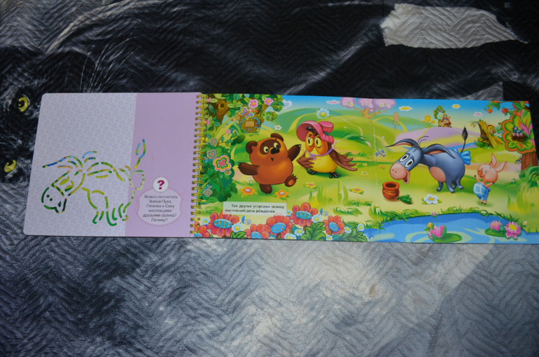Вчера целый день читали и рисовали любимых героев)) Еще плюс в книге то, что если ребенок промажет фломастером и попадет на страничку, черточки легко стираются (мы пользуемся фломастерами на водной основе).
