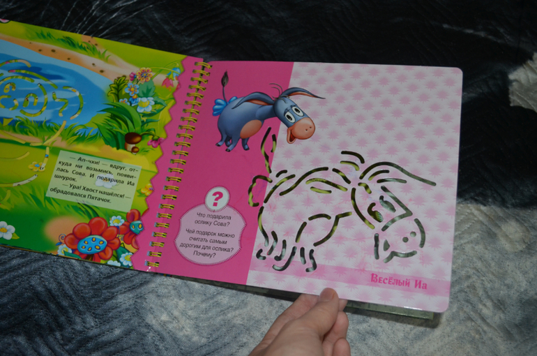 для самых маленькихХочу поделиться с Вами интересной книжкой с трафаретами. В книге присутствует рассказ о том, как ослик Иа потерял свой хвостик, небольшие вопросы к ребенку на каждой страничке, а так же очень классные трафареты.