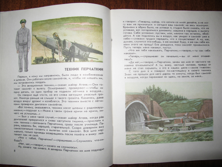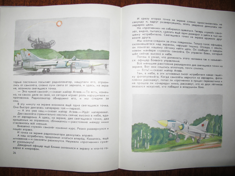Хороша книга! Прочла всю — для мальчишек интересна и иллюстрации на высоте — МиГи, локаторы. капониры — все без дураков ))) Последний форзац вообще замечателен — все самолеты узнаваемы, без ляпов, которые так осточертенели...Спасибо большое!!! Тем более, что мне очень близка эта тема, напоминает о юности, проведенной на аэродромах.А у нас есть книжка Никольского "Кто охраняет небо", но более ранняя — 1968 года и с совсем детскими неинформативными иллюстрациями — про войска ПВО. ее надо читать после вашей ))