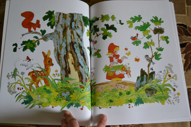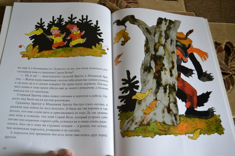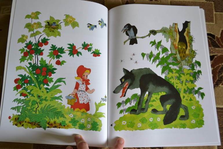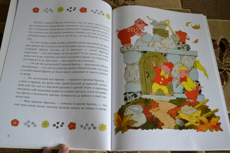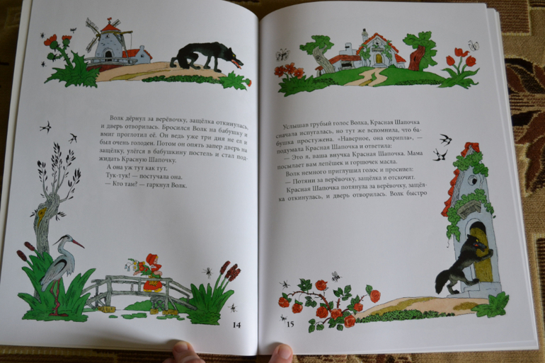Такой же восторг от иллюстраций, как и от книги "Красная шапочка"!И я с таким удивлением прочитала "Трёх поросят"!После наших адаптированных для малышей книг сказка показалось такой длинной и подробной!