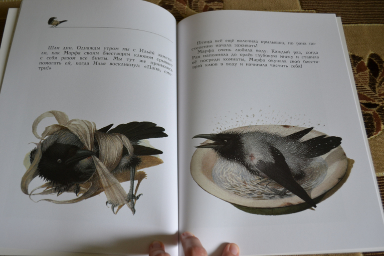 Не знаю, как книга очутилась в этой серии...Она совсем другая!Честно скажу, брать её я сначала не хотела (напугали иллюстрации).Но всё же взяла и не пожалела.Очень мне понравилась добрая история о том, как семья приютила и выходила ворону с повреждённым крылом)))