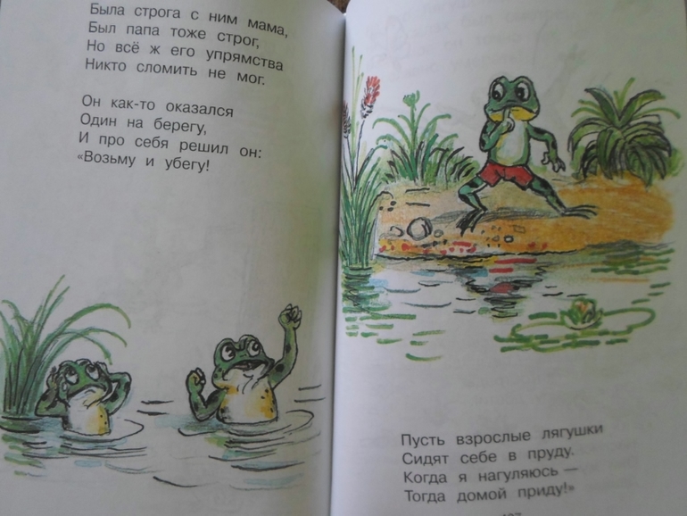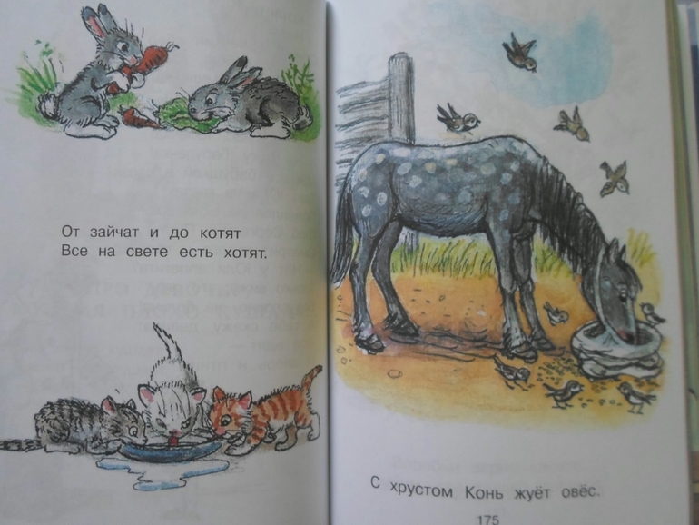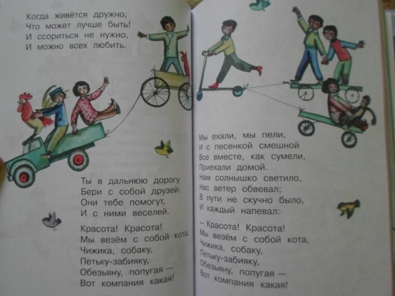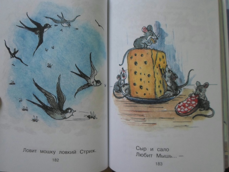 Книга очень красочная, есть стишки и для маленьких и для старших. Ести места где много красивых картинок, есть сплошные залитые листы, а есть и мало. Книга небольшого формата, держать удобно, иллюстрации разных художников (лично я была бы рада картинкам Сутеева или Чижикова, уж сильно они мне понравились,) но меня это не смущает, а даже нравиться!