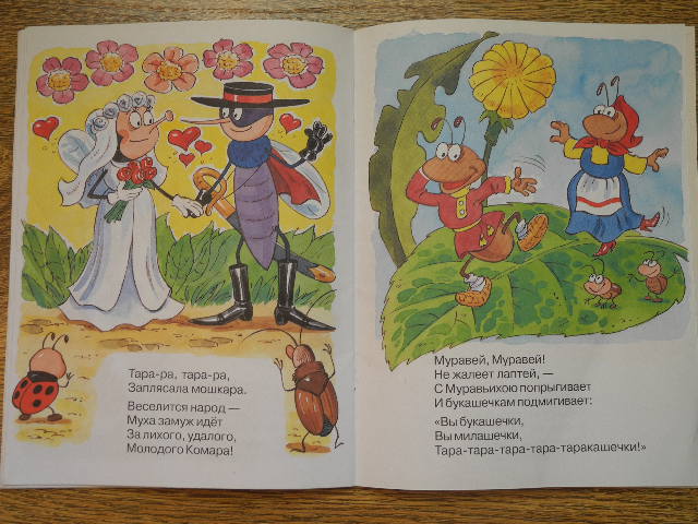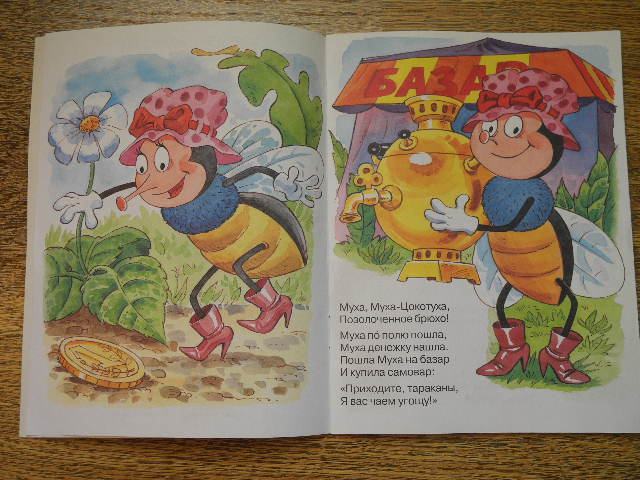 для самых маленькихпервая попытка познакомить дочку с Мухой-Цокотухой не увенчалась успехом. в нашем сборнике это произведение с иллюстрациями Конашевича совсем не приглянулось дочурке.