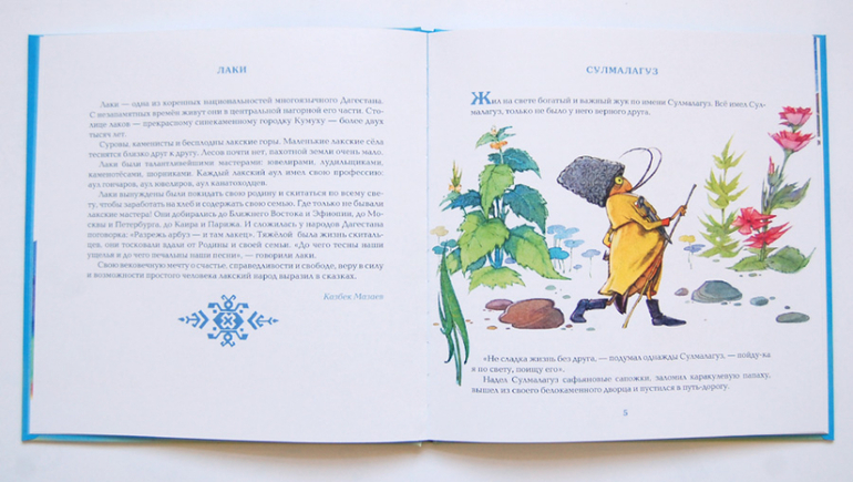 По существу: в книге четыре сказки народа лаки - коренного народа Дагестана. Сюжеты простые и понятные ребенку, а уж рисунки, рисунки!!! Впрочем, я опять о своем :)