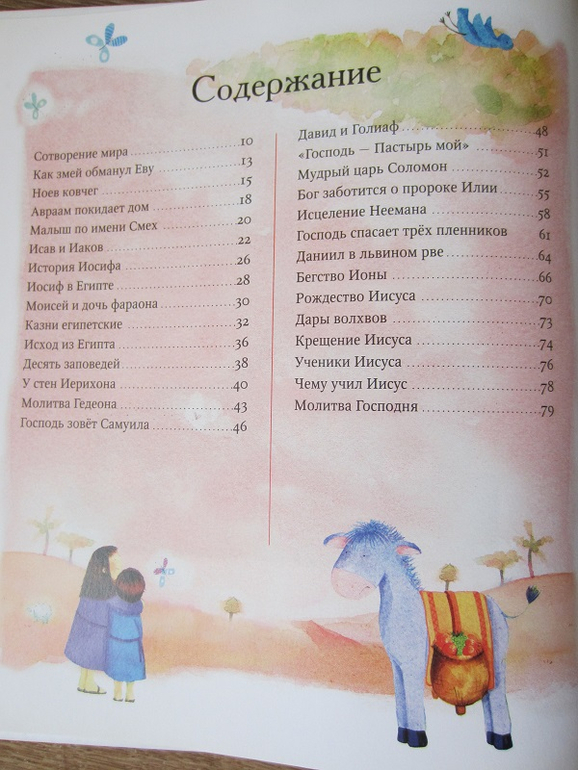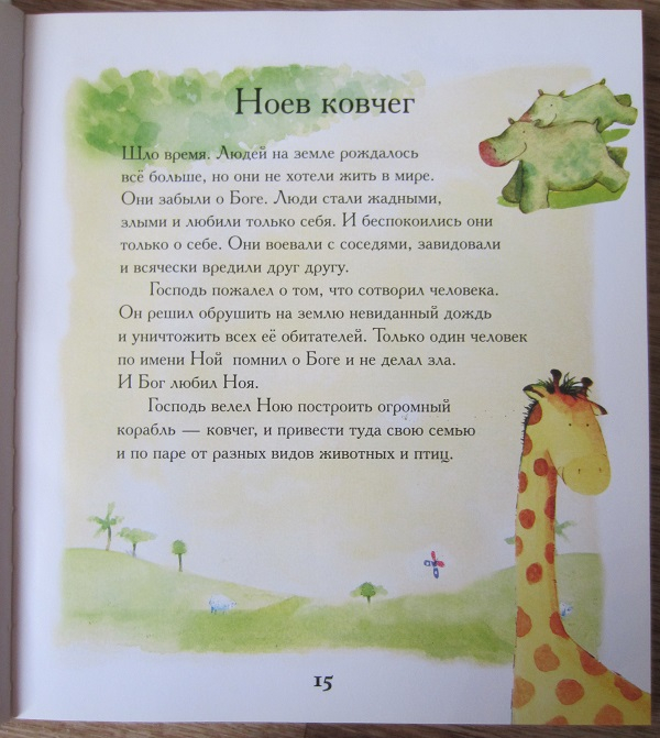 «Библию для самых маленьких» я подарила Владу ещё зимой. Очень мне понравилось это издание. Хорошо, что его допечатали, и уже не один раз. И спасибо, что наше сообщество заставило обратить на неё внимание, а потом девочки даже подсказали, где купить (так как в интернет-магазинах тем летом книга отсутствовала). Библейские сюжеты, пересказанные для малышей, сопровождаются очень приятными иллюстрациями.