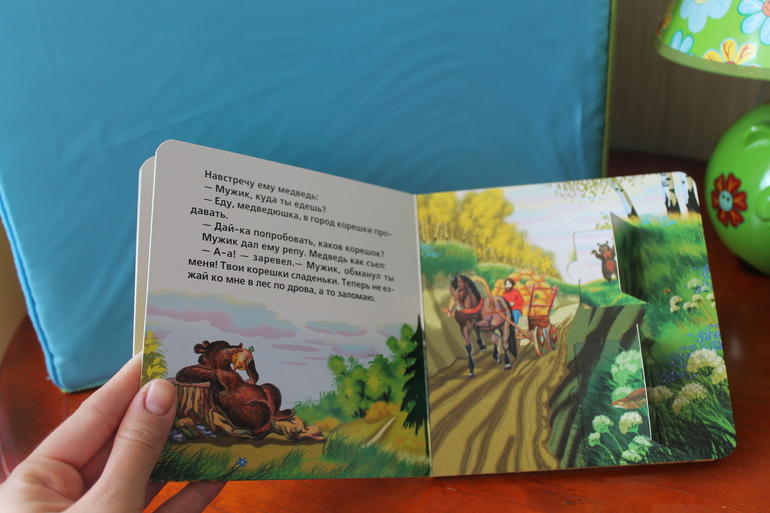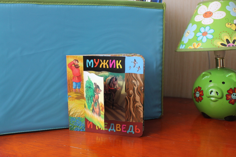 4. Мужик и медведь. Книжка с клапанами, небольшого формата, книга не плохая, купила так как брали мы недавно книгу из библиотеки Мужик и медведь, Максиму очень понравилась. Решила и нам прикупить эту сказку, не скажу что ребенок в большом восторге от книги, но сказку слушает!