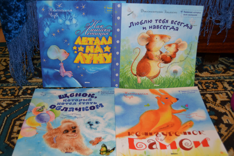 Тоже лежали у нас на полке не менее полугода.И вот наконец пришло их время)) Чаще всего читаем "Я хр-р-рабрый, как папа", остальные читали 1-2 раза.Простые, добрые истории, чудесные иллюстрации.Правда лично для меня неудобен такой формат - большой и квадратный...