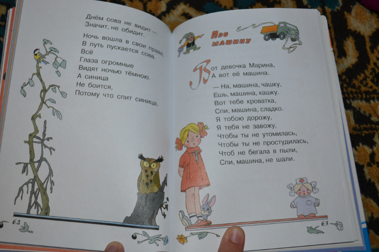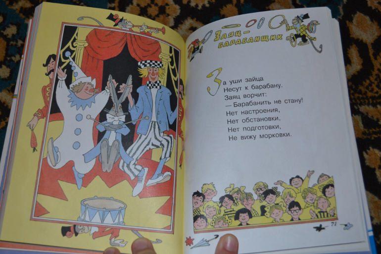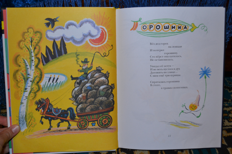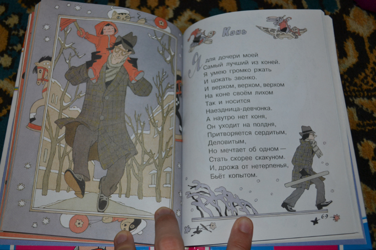 Чуть не упустила этого замечательного поэта из виду!Когда наткнулась на его стихи (в детстве у меня не было его сборника), то была в восторге!Решила обязательно заказать!Читать начали сразу (что бывает редко), многие стихи подойдут на большее младший возраст.Но успех книги вызван не только стихами, а сочетанием чудесных стихов с не менее чудесными иллюстрациями, которые очень понравилось разглядывать моему сыну!Книга небольшого удобного формата, толстенькая, стихов много на любой вкус.