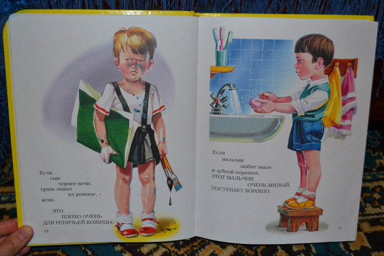 Когда полгода назад муж оплачивал мой заказ на озоне и увидел в заказе Маяковского, то не понял, зачем.Да ещё и не самый бюджетный вариант.Однако с тех пор хоть и не часто, но с завидным постоянством эту книгу сын просит ему достать с полки.О покупке ни разу не пожалела.Начинали читать конечно с "Что такое хорошо...", потом стали читать "Кем быть", а сейчас уже про "Власа лоботряса" читаем)) Иллюстрации хоть и "пахнут" советскими временами, но они очень органичны с текстом, на мой взгляд.Разглядывать книгу сыну нравилось всегда.