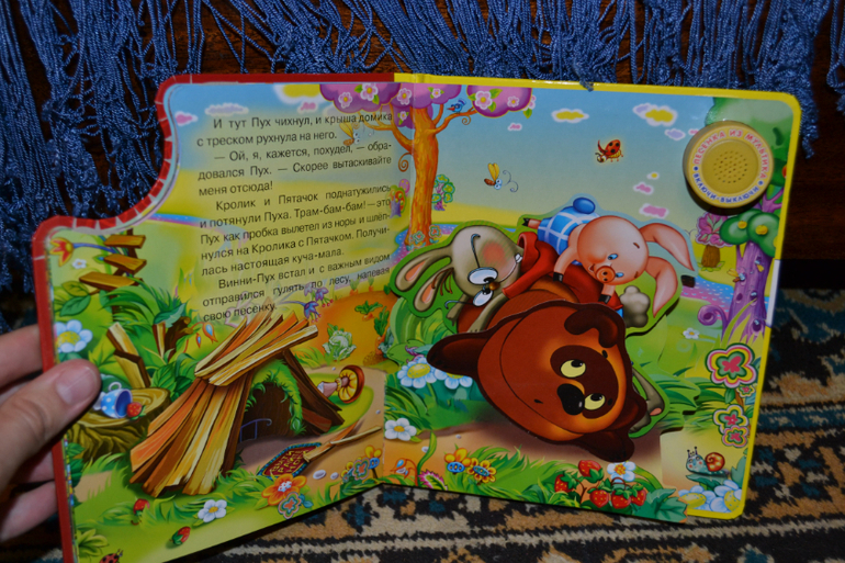После затянувшегося на несколько месяцев "ремонта" этой книги нашим папой она (книга) наконец вернулась к сыну, чем сильно его порадовала!Панорамка в книге движется в зависимости от того, насколько открыт разворот.
