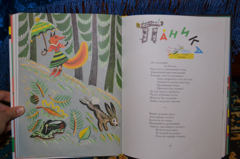 После успеха книги "Когда я вырасту большой" Введенского с иллюстрациями Калаушина, я решила разориться и на эту книгу (из-за иллюстраций конечно).Честно скажу, сначала я была разочарована стихами.Однако стихи такие разные и их так много (книга толстенная и тяжелющая!), что в ней каждый найдёт что-то для себя.И мы с сыном нашли)) "горошину" и "Панику" читали уже много раз, некоторые другие стихи реже.Все конечно же ещё не осилили!