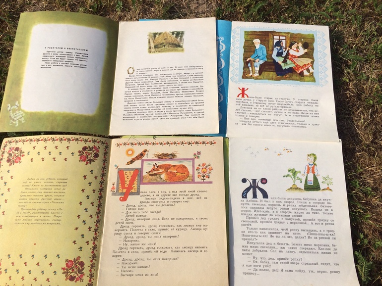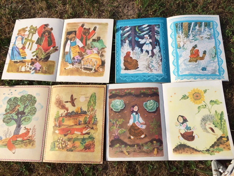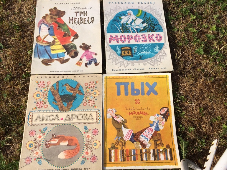 Четыре книжки из серии "расскажи сказку" ( Лиса и дрозд, Три медведя, Морозко, Пых) эта серия своего рода пособие для развития речи, в начале книжек идет небольшой текст самой сказки(1-2стр), а все остальные страницы занимают большие яркие картинки, по которым легко можно пересказать данные сказки.