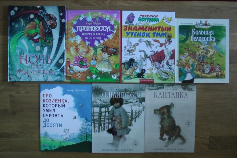 Замечательные книги!"Знаменитый утёнок Тим" у нас уже давно на полочке живёт, а "Козленок ..." где-то в пути к нам, ну, а " Филипок" с "Каштанкой" пока ожидают в виш-листе:-)