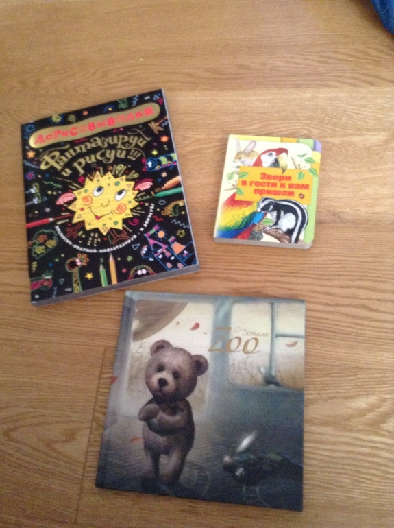 Zoo единственная книга, которая разочаровала...не могу понять куда смотрели мои глаза, когда я ее покупала.сделана качественно и есть очень хорошие рисунки(хочу заметить не все,дети на некоторых иллюстрация на смерть похожи).стихи по-моему скромному мнению тоже оставляют желать лучшего.может я чего-то не понимаю,но для меня эта книга явно не подходит(отзывы в интернете очень хорошие,смотрела в лаб и read).советую повнимательней их почитать и получше смотреть фото перед покупкой.единственное что спасает ситуацию это то, что я потеряла всего 114 р,теперь думаю куда бы ее сбагрить.