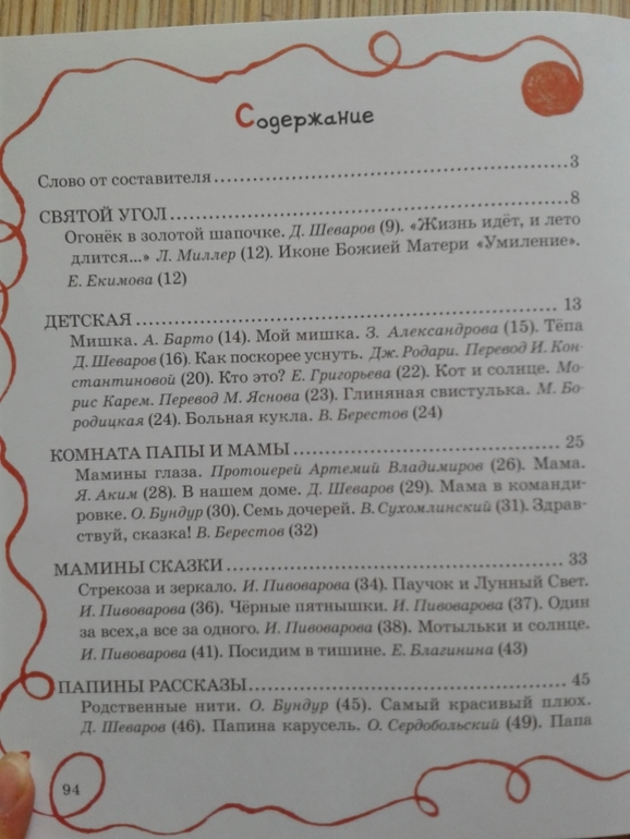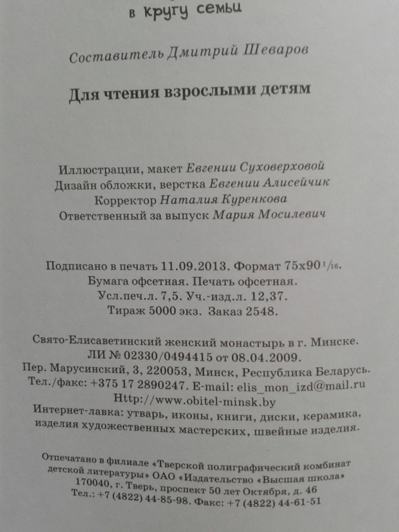 Книжечку прислала моя подруга на день рождения доченьке. Сразу оговорюсь, что ни я, ни моя подруга не РЕЛИГИОЗНЫЕ (в церковь по выходным не ходим, молитву перед сном не читаем и т.д.). Книга издана Свято-Елисаветинским женским монастырем в г.Минске. Это сборник стихов и рассказов. Книга для чтения всей семьей. Дорогие ББ-шечки, какая же она теплая, домашняя, какая-то действительно светлая и (может громко сказано) божественно чистая. Каждый стих, каждый рассказ пропитан какой-то чистотой, светом. Здесь и современные и классические произведения, русские и зарубежные авторы. А какие иллюстрации!!!!!! Прям глаз не оторвать. С религиозным, ненавязчивым оттенком только несколько произведений. От этой книги становится как-то спокойно и уютно. Разделы представлены в виде как бы комнат. А книгу автор называет домом. Домом в котором всем есть место, всегда уютно, тепло и спокойно. Смотрите сами.