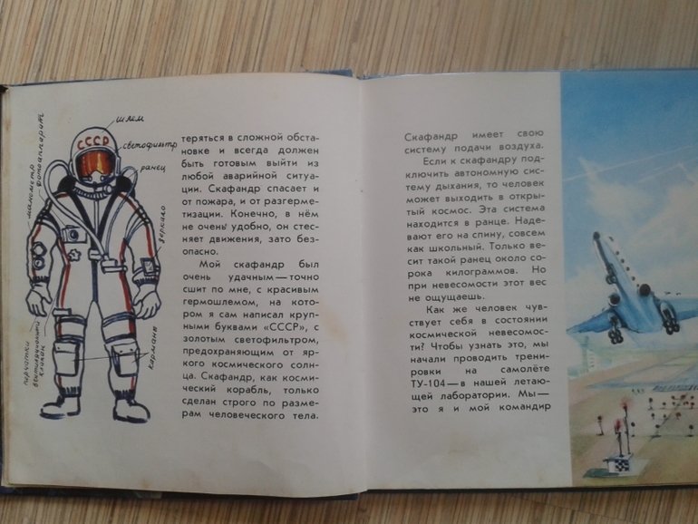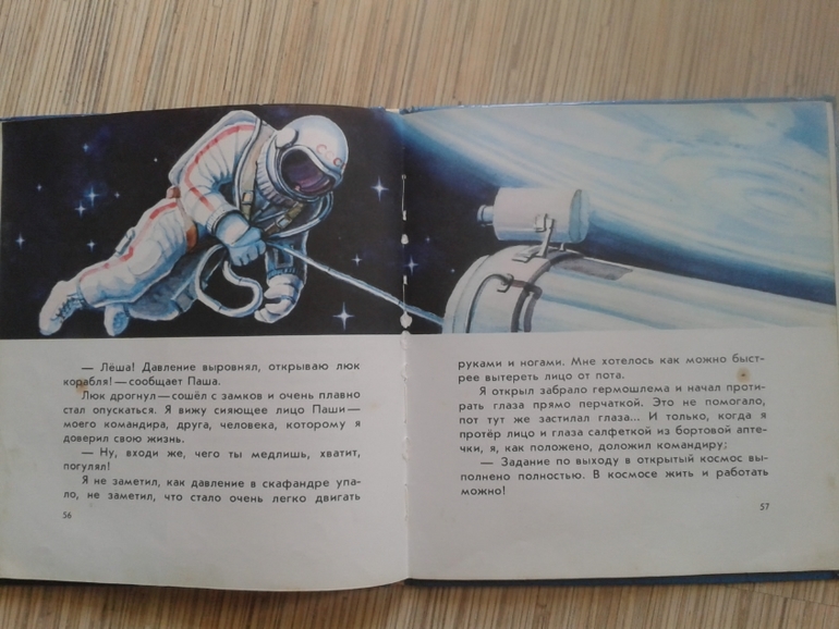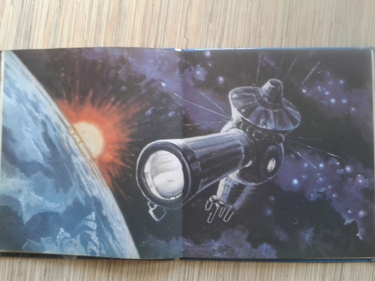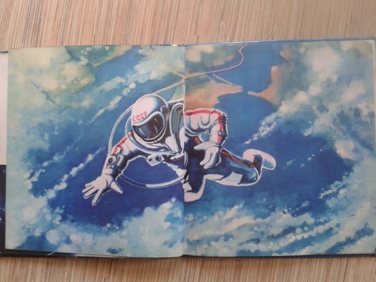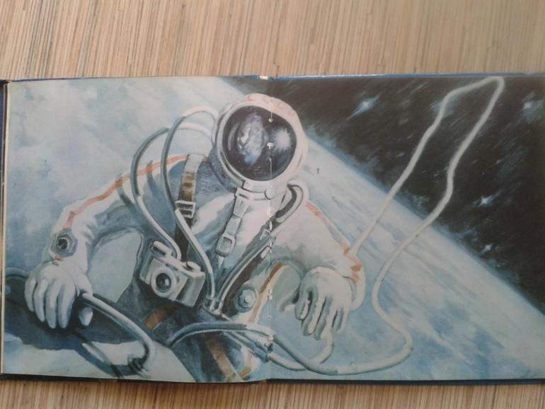 Эту книгу я многократно в детстве рассматривала и сама придумывала истории про полеты в космос. Не знаю переиздавали ли ее с 1980г. или нет. Но я очень рада, что нашла ее и могу поделиться с вами. Особую ценность книге придает авторство самого Алексея Леонова, который первый своими глазами видел космос через стекло своего космического шлема.