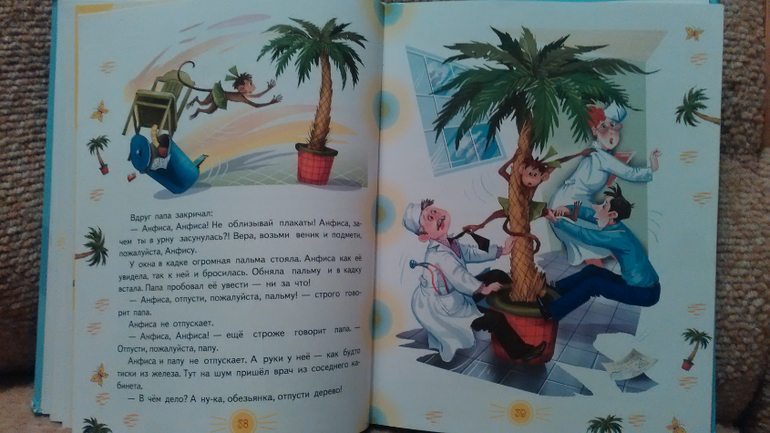 Я долго выбирала доче вариант этой книги и ни сколько не пожалела, что остановилась на этом. Отличный иллюстрации на каждом развороте, доче есть что разглядывать пока я читаю ей рассказ. Но, не смотря на то, что доча довольно усидчивая, но полностью текст автора пока высидеть не может, приходится этот текст сокращать. Но сами рассказы у дочи на "ура!", особенно тот эпизод где обезьянка мешала воспитательнице играть на пианино песню, высовывая лапку и незаметно делая "Блям" по клавишам. Доча хохотала=)