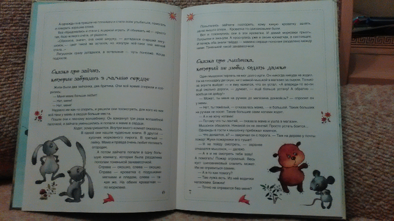 Восторга у меня книга не вызвала, но я вполне ей удовлетворена. Очень красивые яркие иллюстрации на каждом развороте, а истории такие добрые, мягкие, убаюкивающие, уносящие в мир фантазий и волшебства. Очень хорошо читать перед сном.