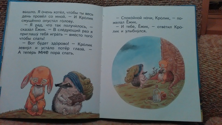 Истории добрые и милые. Показана крепкая дружба между Ежиком и Кроликом. Меня немного смутил кролик на иллюстрациях, но теперь уже я привыкла и иллюстрации кажутся мне забавными и милыми =) В общем и целом, книга очень даже достойна того, чтобы оказаться в вашей библиотеке =)