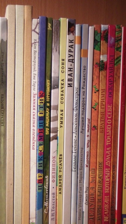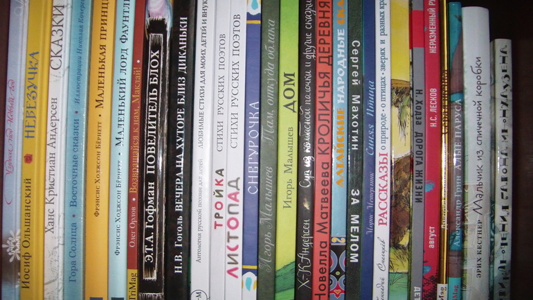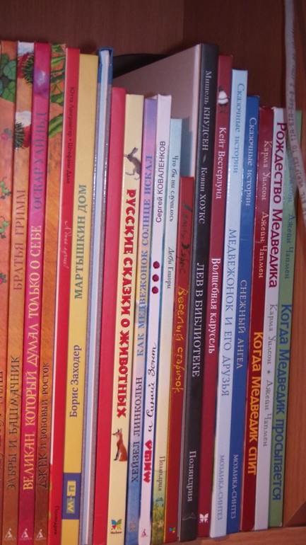 Книги покупались с рождения, рассматривали картинки с 3 месяцев примерно, потом короткие стишки и т.д. А как попала сюда, то библиотека начала расти  как на дрожжах, так, собственно говоря, тут со всеми бывает. Ребенок слушает с рождения, бывали перерывы, когда интерес к книгам остывал, но всегда возвращался опять, спустя время.
