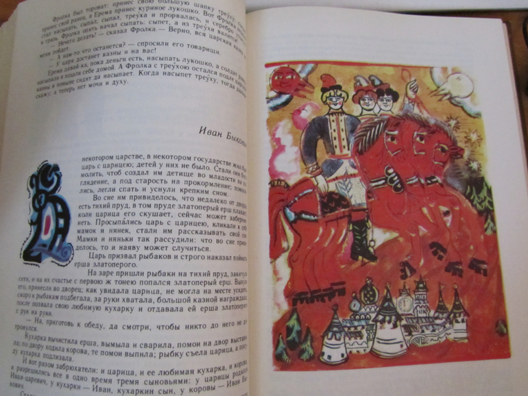 В книге всего 14 рисунков на страницу, но каждая сказка начинается с красивой расписной буквы
