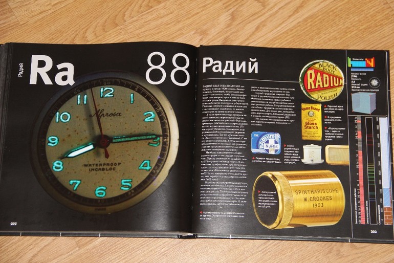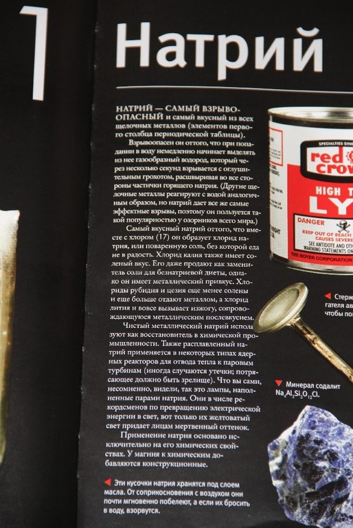 А вы знаете, что раньше в домах трубы делали из свинца, а он как известно ядовит, а в США выпускалась посуда, которая при соприкосновении с горячей пищей выделяет радиацию и даже сейчас, спустя много лет счетчик Гейгера показывает радиацию, что когда то выпускалась зубная паста с радием и торием, самыми распространенными на планете радиоактивными элементами и вообще считалось, что радиация полезна для здоровья и даже выпускались напитки "здоровья", а кальций, необходимый организму и костям, в чистом виде - это блестящий металл, похожий на алюминий, натрий при соприкосновении с водой взрывается, а на воздухе белеет, поэтому хранить его нужно под слоем масла, а некоторые элементы системы хотя и открыты, но на Земле не существуют, их можно получить только искусственно в ускорителе тяжелых ионов и много-много другого. Может быть в вашей жизни это абсолютно лишние сведения, но интерес к химии у ребенка, да и у взрослого эта книга способна пробудить.