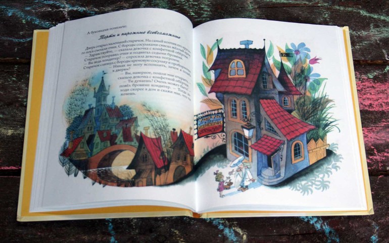 В мозгу спустя пару минут наконец-то осуществляется нужная нейронная связь и я уже радостно скачу и пляшу вокруг это милого домика Кондитера. Рассказываю дочке о своем открытии: мы скоро поедем на дачу, а там у нас на стене весит рисунок как раз с этим домиком!