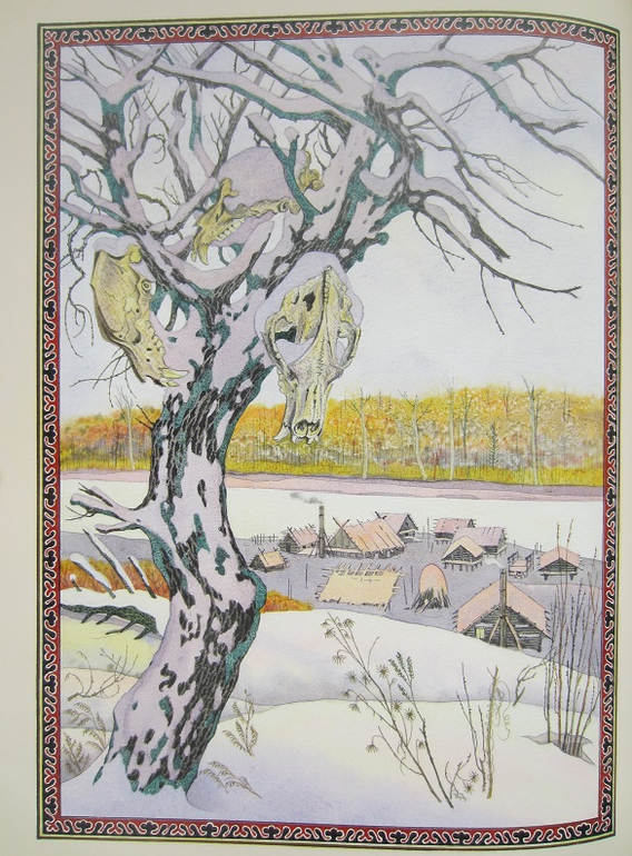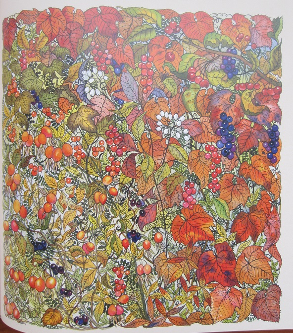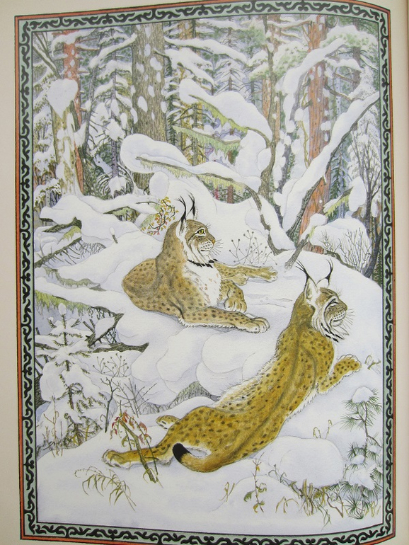 К каждой сказке они особенные, выполненные немного в разном стиле, но с огромной любовью к таёжным краям. Осень и зима они очаровывают: осень - яркой щедростью, зима - морозной свежестью. Некоторые иллюстрации и фрагменты: