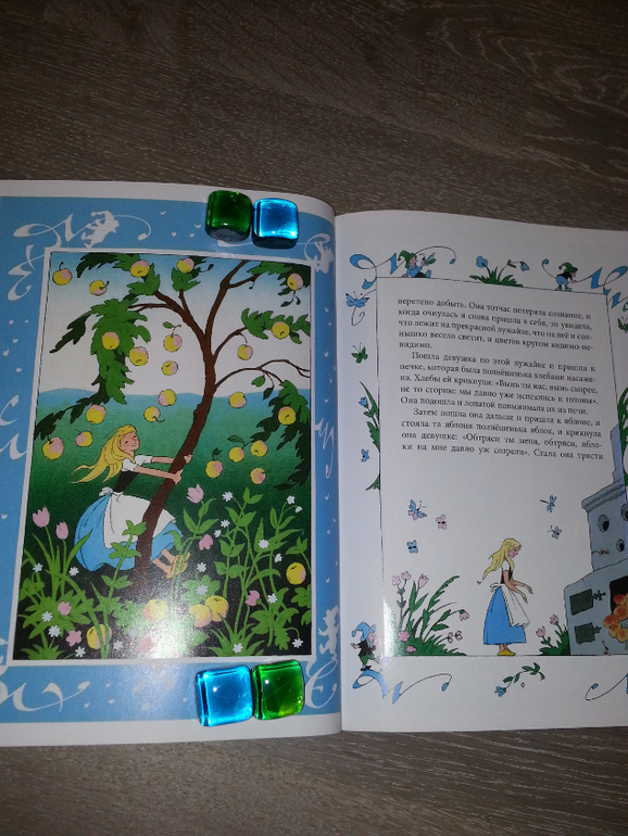 В этой книжке есть еще "Госпожа Метелица" братьев Гримм, тех же иллюстраторов. Прекрасно, но пересказ Полевого читать сложно,я сочиняю от себя)))