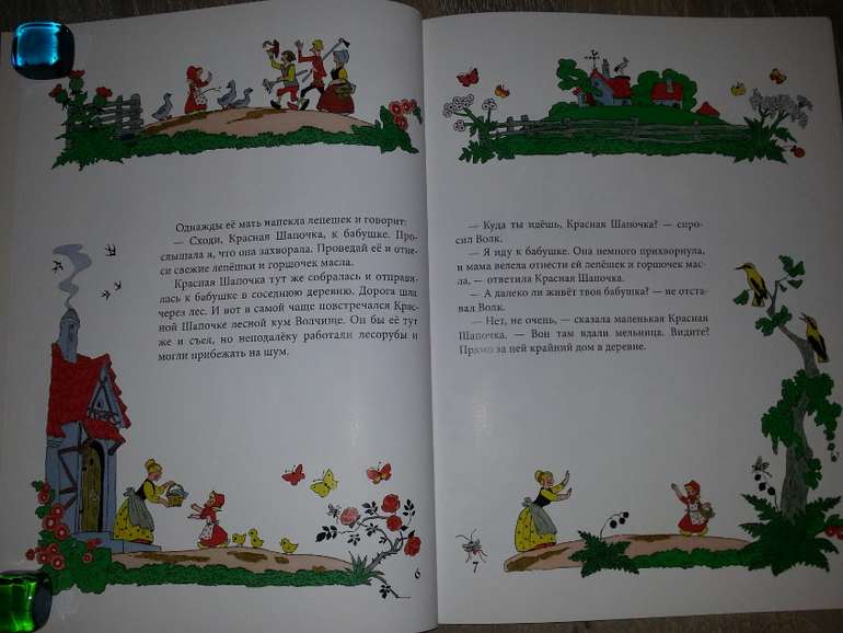 "Красная шапочка" от Рипол с иллюстрациями Булатова и Васильева. Я,если честно, считаю эту Красную шапочку идеальной с точки зрения иллюстрации, особенно для маленьких. Ну такая она малышка здесь, такие птички, зверюшки и все мелкие детали просто очаровательны.