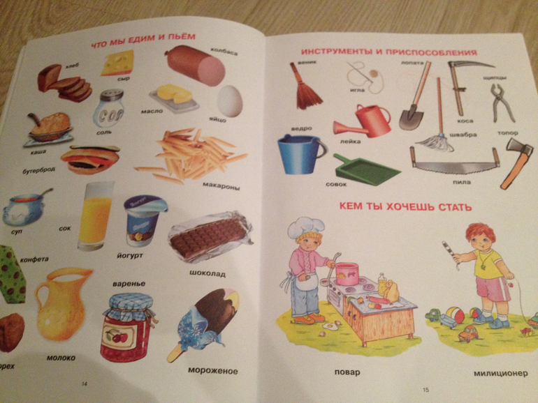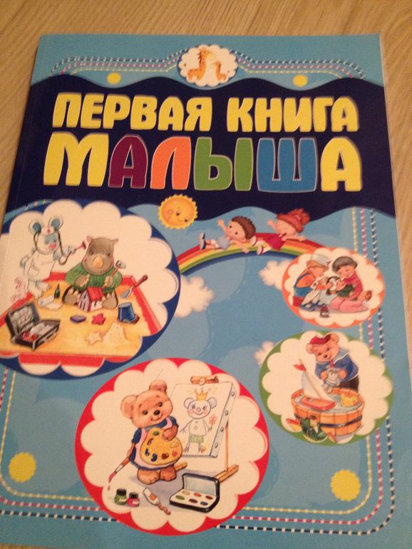 «Первая книга малыша». Издательство «Харвест» Минск. На разную тематику основные предметы. Подписи к картинкам. Картинки приятные. Книга огромная, больше А4. Сын с года тыкал в картинки, а я озвучивала. Свекровь моя (логопед-дефектолог), говорит, что книга подобного плана должна быть у каждого ребенка и очень развивать речь. Мой, кстати, двухлетний сын говорит предложениями уже. В полтора уже говорил половину слов из этой книги.