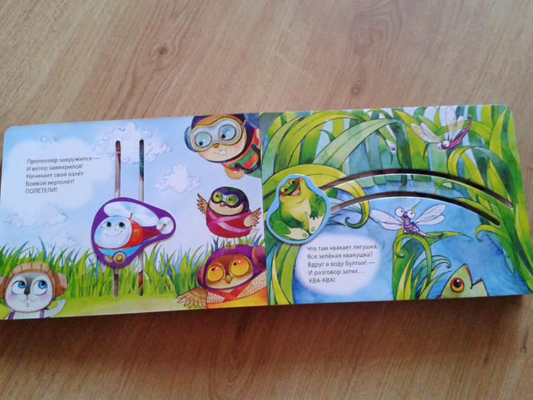А вторая - книжка-игрушка от "Эксмо" с движущимися картинками. Очень приятные яркие сочные илюстрации! Дочка еще не видела, но ей по идее должно понравиться))) несколько страничек ниже.