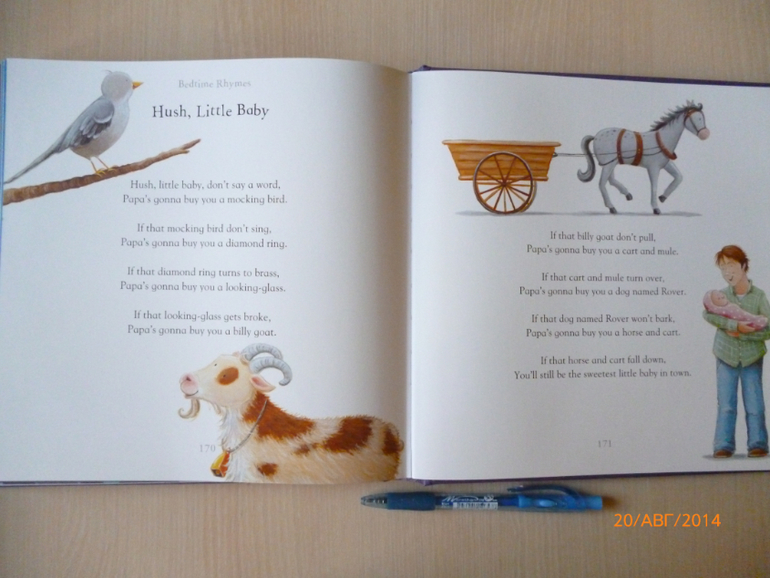добавила ваш пост в закладки, сейчас вот перечитала! какая же вы умница, огромное спасибо за фото такого количества разворотов! я уже почти год вынашиваю мысль заказать с этого же сайта, вот наконец созрела)у меня маааленький вопрос по поводу Nursery Rhymes, вообще я видела несколько видов таких сборников стихотворений, вы выбрали именно этот, поделитесь соображениями, пожалуйста. мне очень нравится, вот думаю, стоит ли искать какую-то альтернативу или тоже этот заказать и радоваться)))) я и у Гаечки спросила тоже, жду её развернутого поста, но Ваше мнение тоже очень важно и интересно!!!