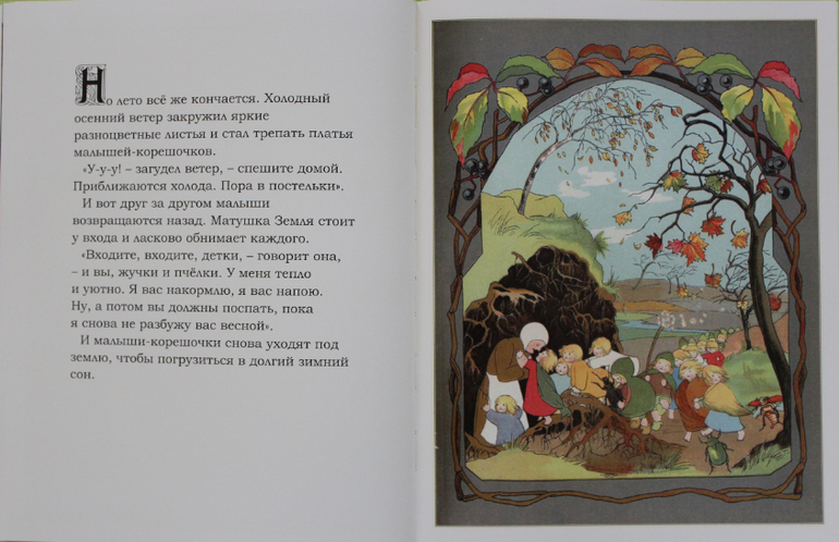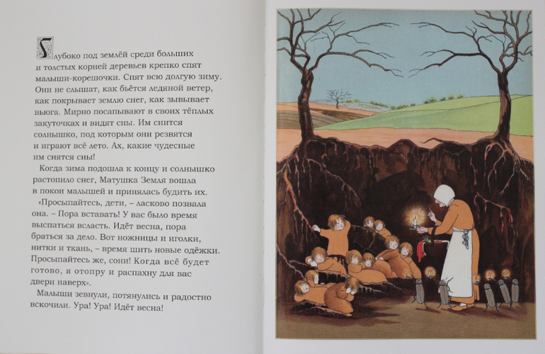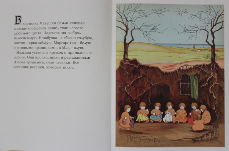 Чудесное произведение о малышах-корешочках, которые всю зиму спят в объятиях Матушки Земли, а весной они пробуждаются и выходят из-под земли в разноцветных нарядах.