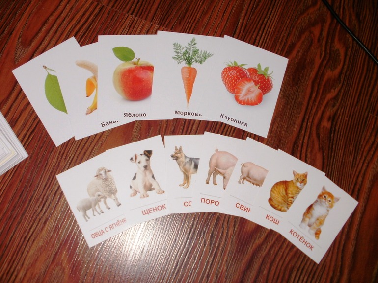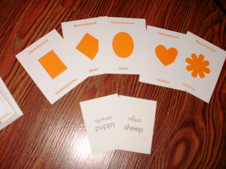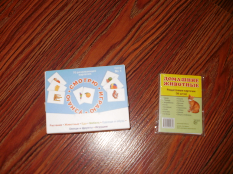 Заказали вот такие карточки. Маленькие с животными - с обратной стороны названия животных на английском. Большие плотные яркие - с обратной стороны - цвета и фигуры. Пока еще не начали их показывать.![]()