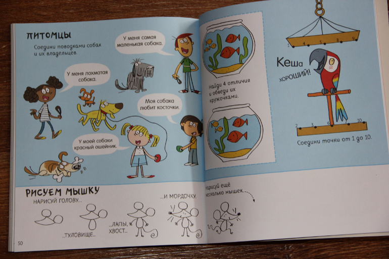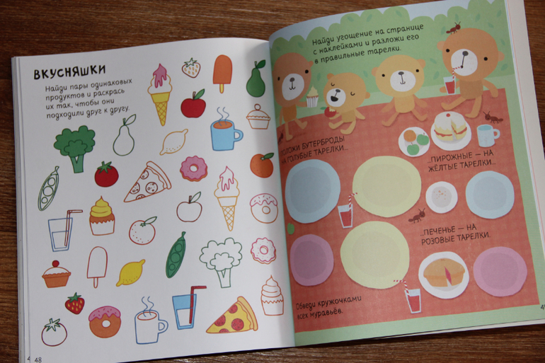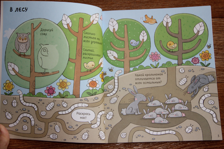 Эта книжка с занятиями и есть еще наклейки в середине книги. Там задания и дорисовать нужно что-то, и посчитать и на логику.
