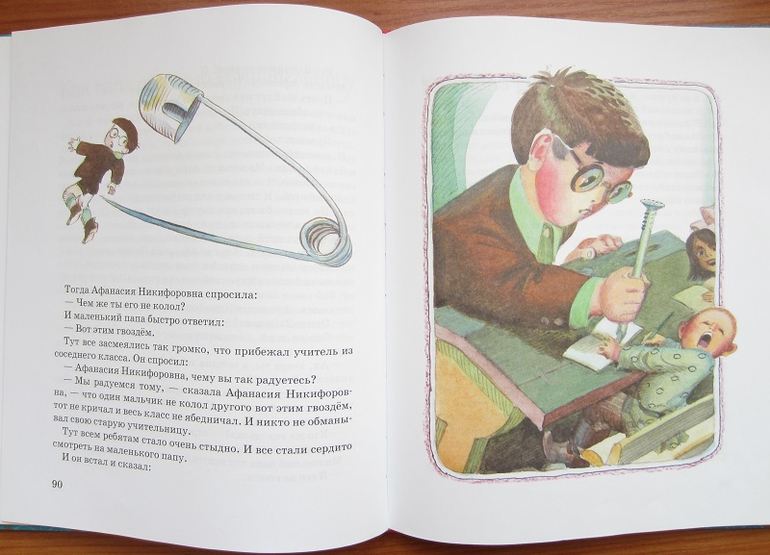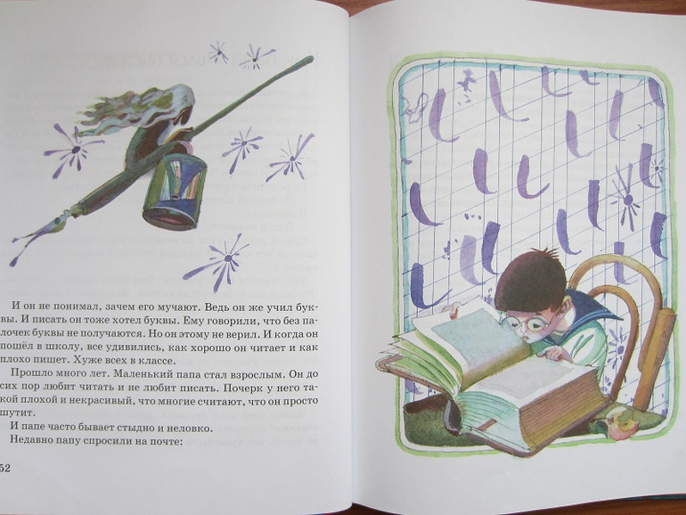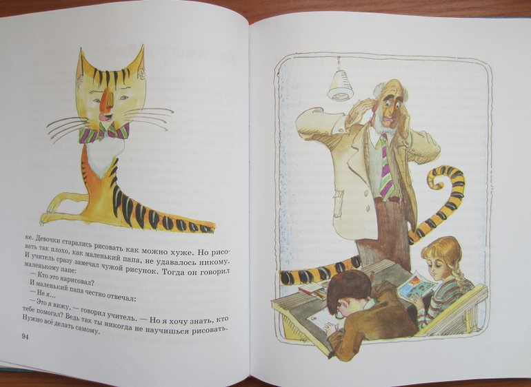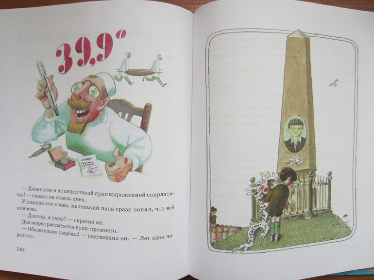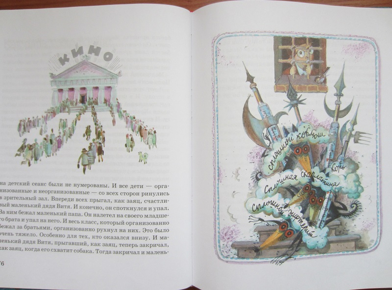 А ещё о времени, когда всё происходит… Наверное, ситуации настолько типичные для любого времени, детские переживания так похожи на сегодняшние, что я даже и не задумывалась, пока вдруг не «показались всадники», потому что «только что кончилась война». А потом маленький папа звонит Владимиру Маяковскому…. Вот тогда-то я стала вникать: Александр Борисович Раскин родился в 1914 году, в 40-ые годы работал в журнале «Крокодил», а в 1961-1963 и создавались эти рассказы о маленьком папе!