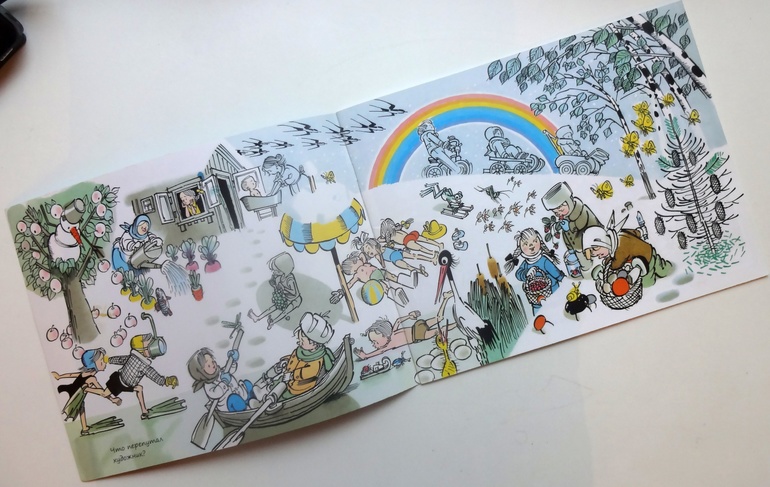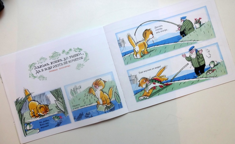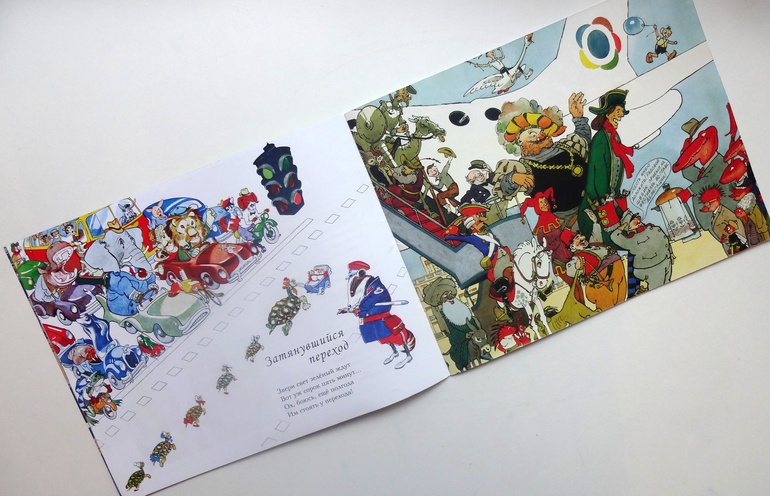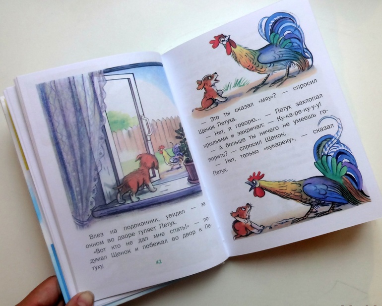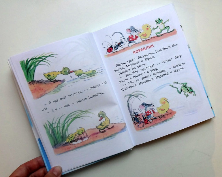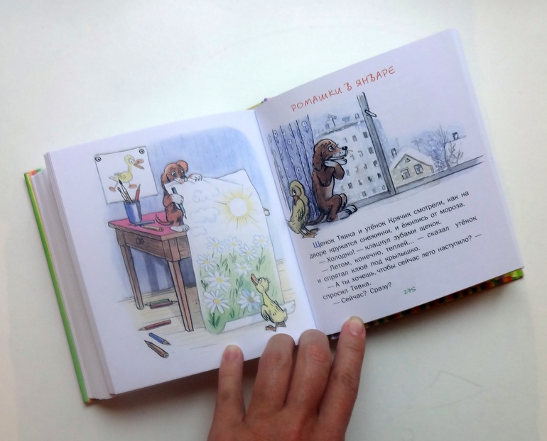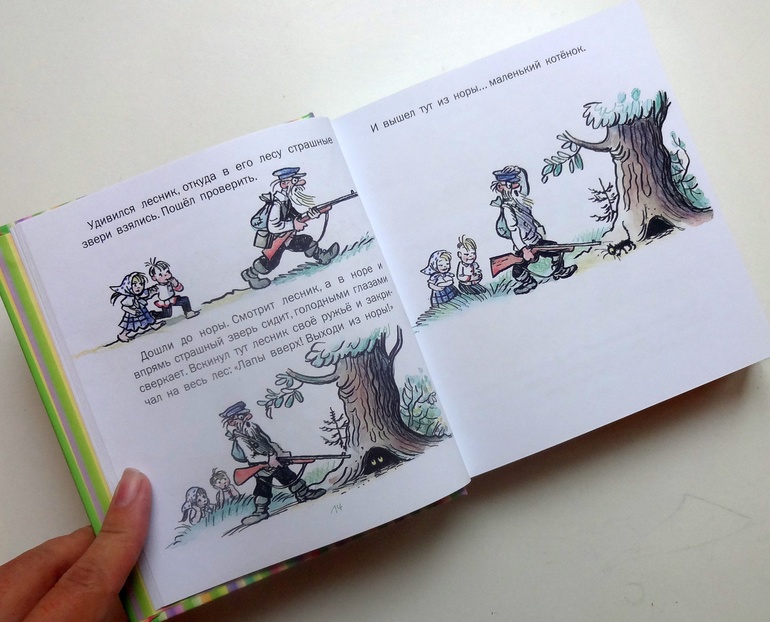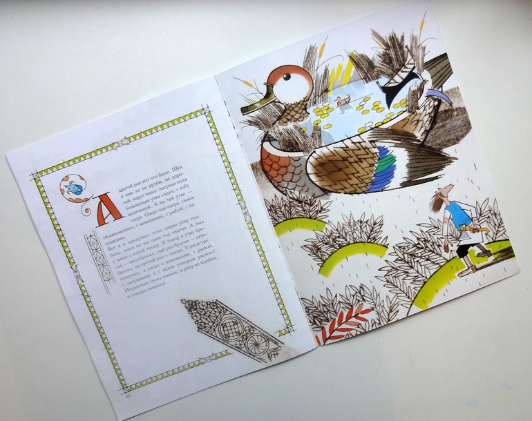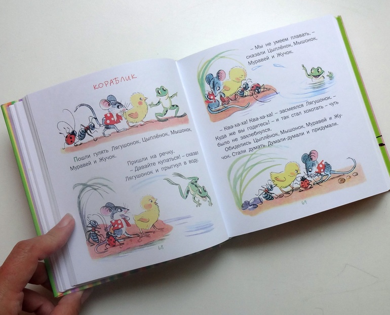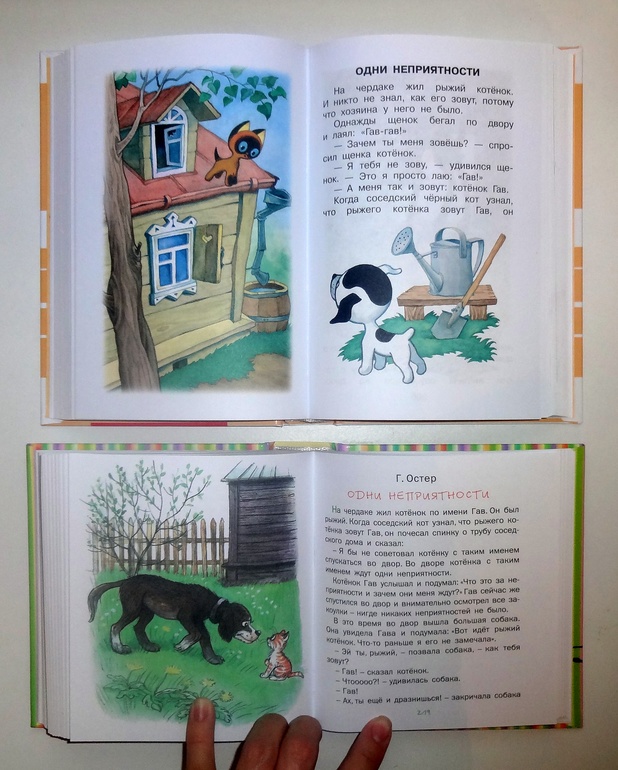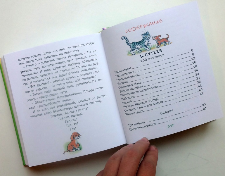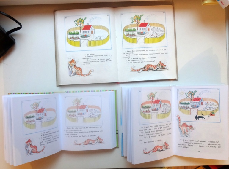 Сравнительное фото одного разворота из предыдущей книги и из книги "Лучшие сказки в картинках Сутеева".