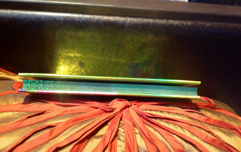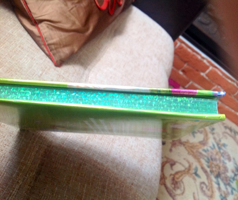 Но обложка.. Обложка ослепляет. Буквально! Она сияет всеми цветами радуги. И срез листов тоже! Оптические возможности камеры на айпаде не способны передать весь этот блеск и буйство красок. Это такой блеск, что просто хочется спрятать книжку под подушку и не доставать больше.